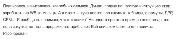 Пользователи негативно высказываются о курсе «Вб На Прокачку». Они отмечают, что заработать с ним не получится. Автор рекламирует пошаговые инструкции, но в реальности предоставляется общая информация, которая не поможет стать экспертом. Отзывы о телеграм-канале Максима тоже отрицательные, так как пользователи не видят в сообществе ценную информацию.