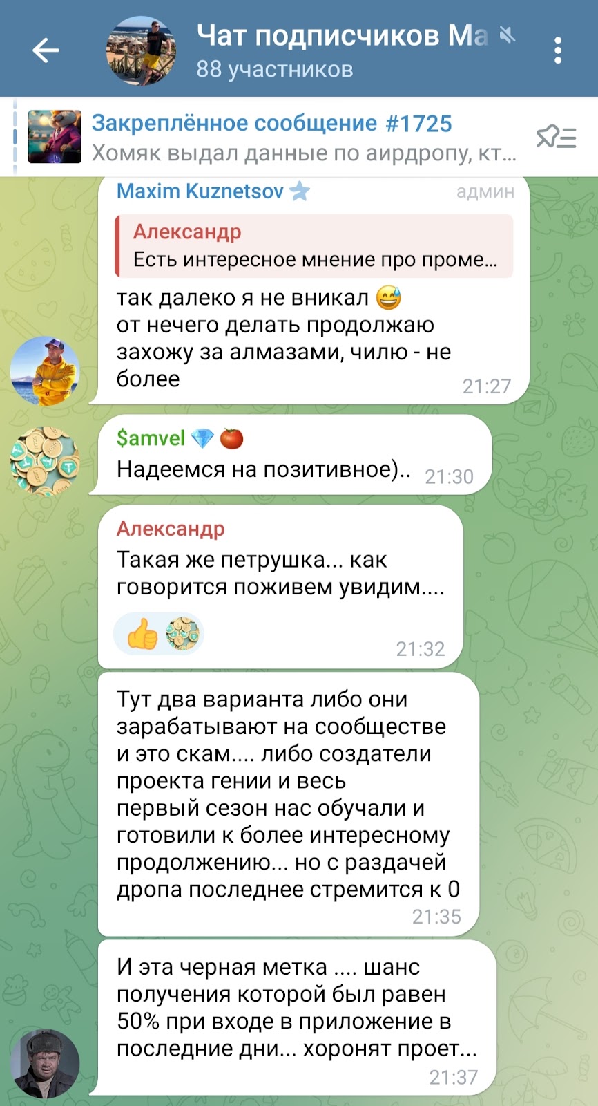 Складывается впечатление, что единственная тема, к которой не равнодушен Максим Кузнецов — крипта, но это не так. Он мило общается со своими подписчиками в чате.