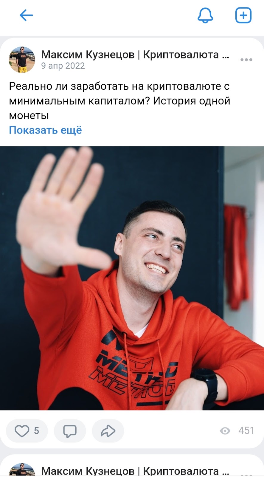 Участь не обошла паблик ВКонтакте. Он тоже остался без внимания владельца. Видимо, это связано как раз с “исправлением” трейдера, которое тот не устаёт демонстрировать.Максим Кузнецов Телеграмм для выбрал не зря: это площадка, где легко стереть следы и начать всё заново.