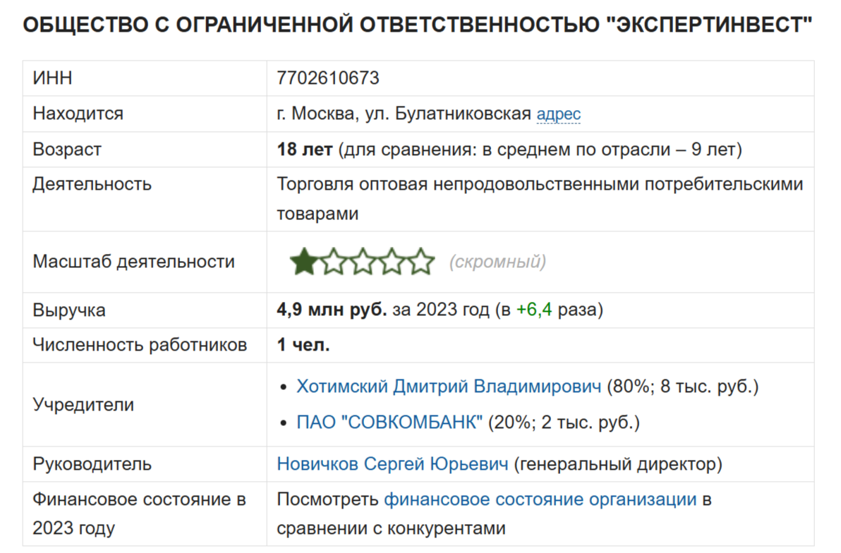 Для продвижения платформы автор создал официальный ресурс, который можно найти по ссылке promo marketpower net. Здесь автор рассказывает, во что необходимо вкладывать деньги на текущем этапе, какие платформы посещать и т. д. На текущий момент основной сайт уже не доступен, но некоторые страницы все еще продолжают работать.В футере ресурса говорится, что в качестве руководящего органа выступает ООО “Экспертинвест”. Компания зарегистрирована в Москве по ул. Булатниковской. Она работает 18 лет и в 2023-м показала прибыль около 4.9 млн. рублей. Учредителями являются Хотимский Дмитрий Владимирович и Совкомбанк. Руководство предприятием возложено на Новичков Сергея Юрьевича.