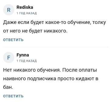 - Образовательная программа не имеет четкой структуры и гарантий. Ученики рискуют получить некачественные материалы вместо обещанных профессиональных знаний.