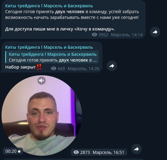 Авторы проекта – два человека. Однако их личности вызывает определенные вопросы. Во-первых, огромную часть постов составляют именно публикации от Марселя, некий Баскервиль на канале почти не появляется, лицо не показывает. Единственный пост, опубликованный якобы от его лица – это кружок, где видно, что автором тоже является Марсель. Кажется, что канал ведет один человек, второй, вероятно, выдуман для того чтобы поднять авторитетность проекта. Ведь два успешных трейдера солиднее чем один.