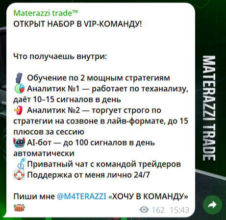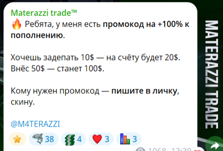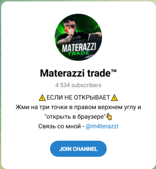 Мы провели обзор телеграм-проекта «Матераззи Трейд» и выяснили такие факты: