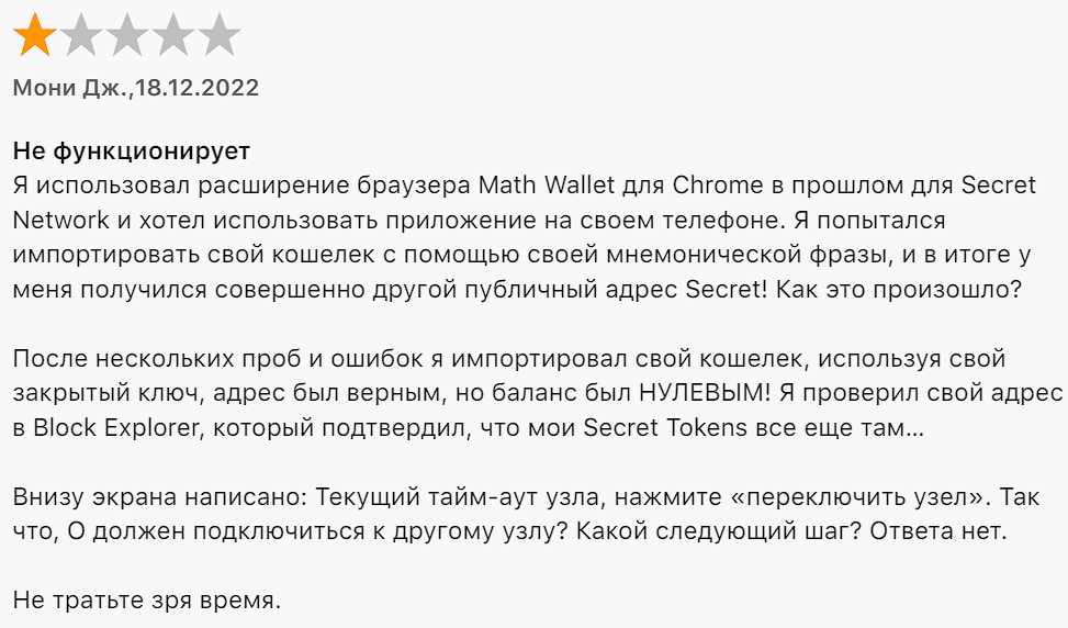 Среди недостатков кошелька авторы отзывов о Math Wallet отмечают: