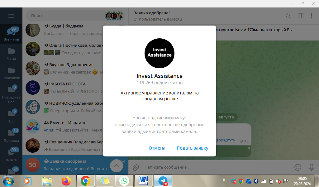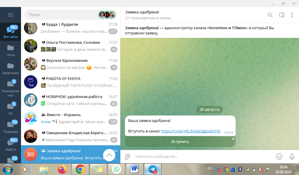 Попасть в телеграм-канал Максима Воронцова можно только после одобрения заявки. Этому предшествует череда спам-сообщений, призывающих подписаться на сомнительные ресурсы схожей направленности.