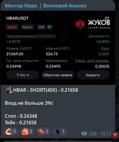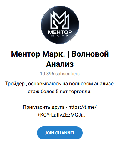 MarkMent0r – автор канала Ментор Марк | Волновой анализ. Проект посвящен трейдингу, анализу рынка. Основная деятельность – публикация сигналов с информацией по входу. Официально платных услуг нет, но для торговли даются ссылки на биржу BingX.