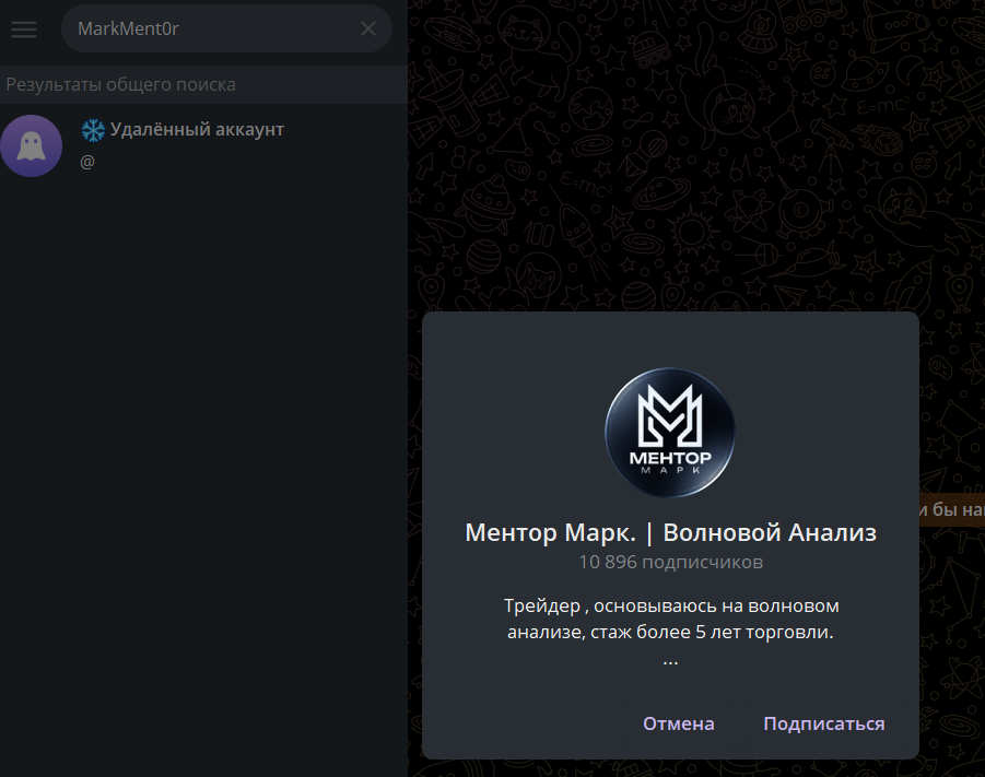 На момент анализа деятельности трейдера аккаунт автора MarkMent0r закрыт. Группа также больше не является общедоступной, необходима подача заявки.