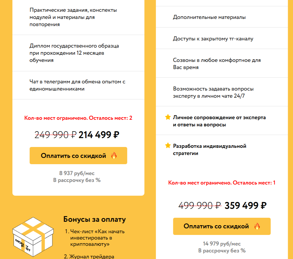 Преподаватель онлайн-школы MoneyFest Мальвина Меркулова альтруизмом не страдает. Ее программа «Университет трейдинга. Получение профессии» предоставляется всем желающим на платной основе. Стоимость курса зависит от его длительности:
