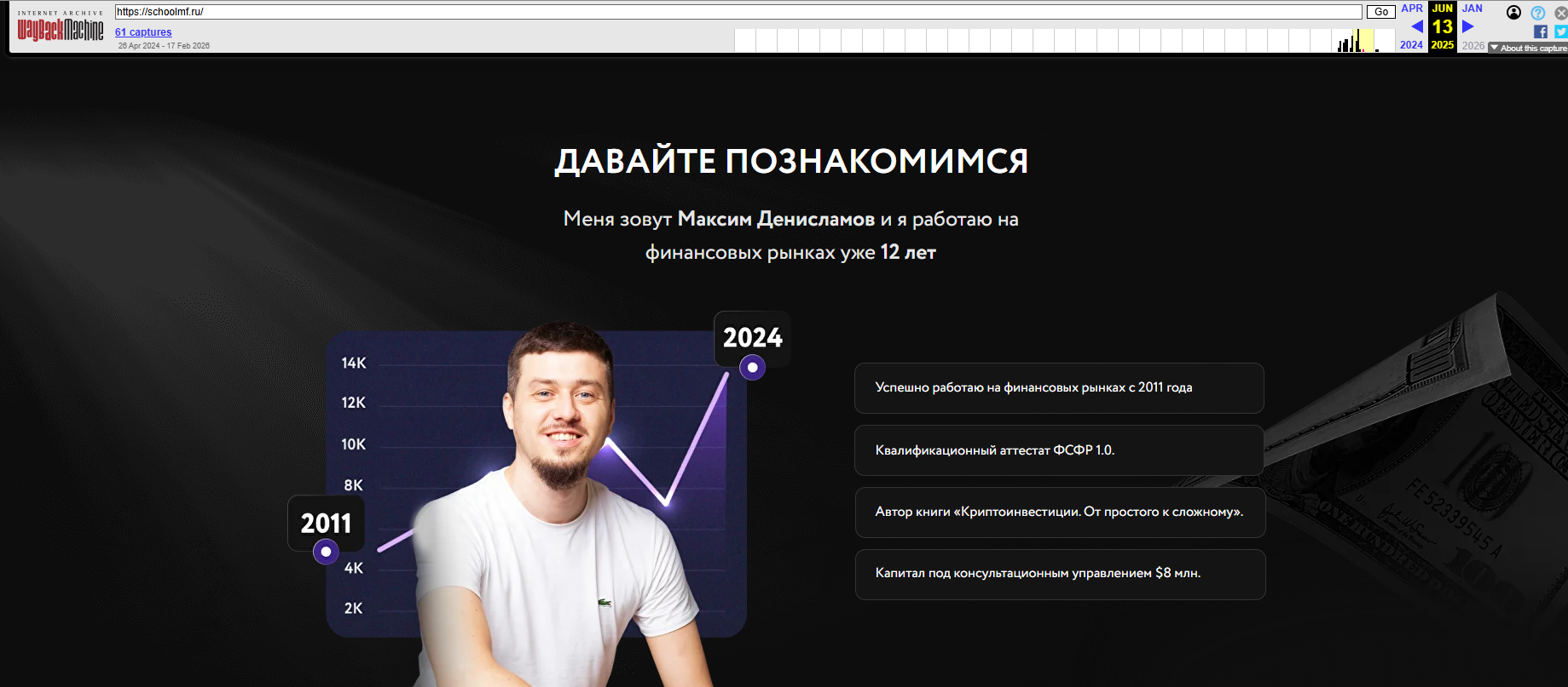 Об экспертности «гуру» трейдинга знает лишь веб-сайт онлайн-школы MoneyFest. Да и то недостаточно долго. Еще в июне 2025 года лидером продаж авторских курсов здесь был Максим Дениславов. В тот период проектом якобы руководило ООО «МФ Финанс». Сегодня на арене онлайн-школы под руководством ООО «Навигатор», основанном 29 августа 2025 года, некая Мальвина Меркулова.