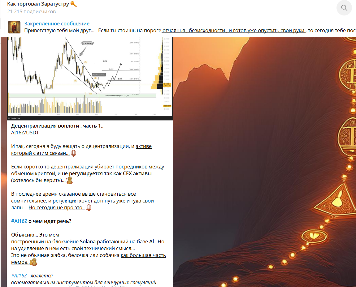 ТГ канал “Как торговал Заратустру” был создан 26 июня 2025 г., и по состоянию на 11 июля 2025 г. существует 26 дней, при этом имея 21К подписчиков. Проект позиционирует себя как закрытое сообщество для избранных без шума, пустых обещаний и рекламы.