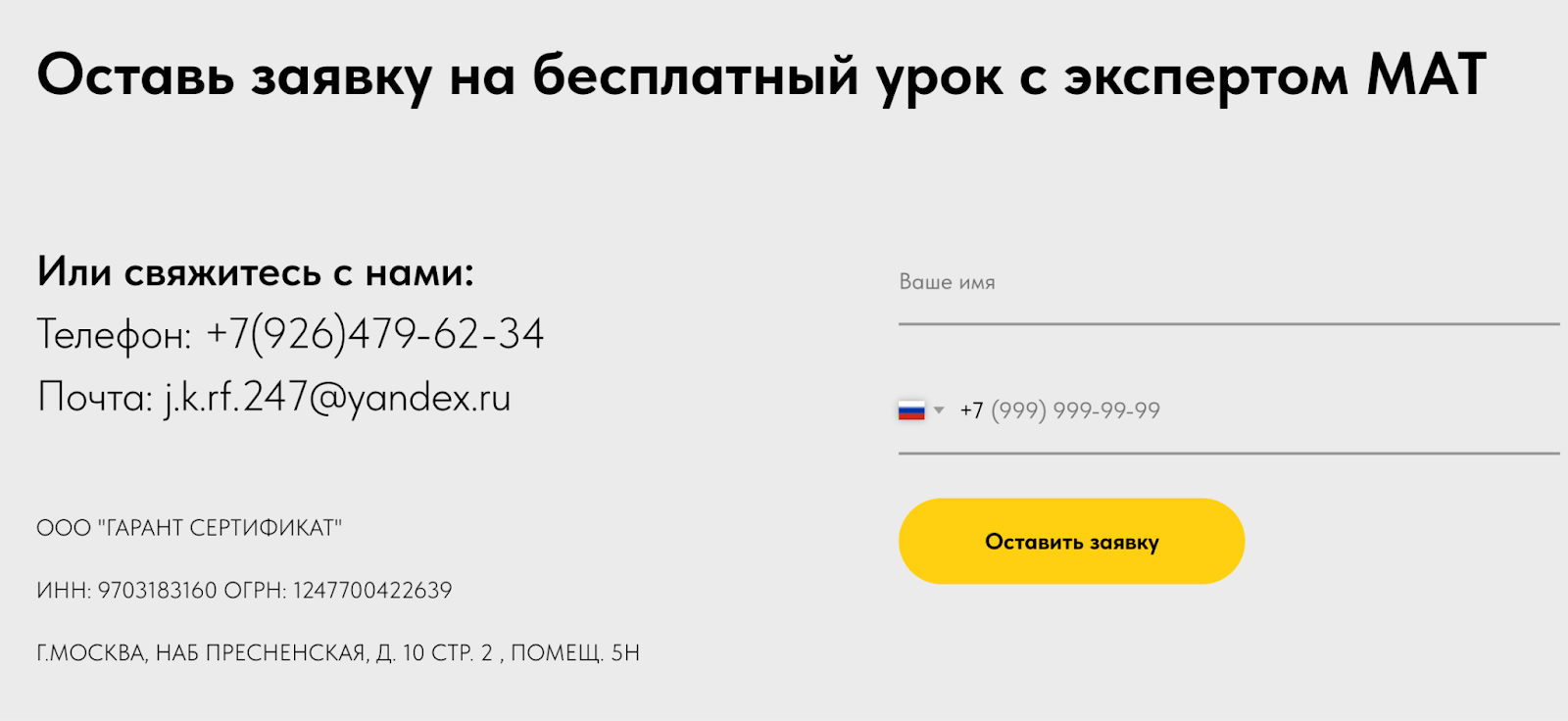 - Компания «ООО ГАРАНТ СЕРТИФИКАТ», упомянутая на сайте, не имеет прозрачной информации о своей деятельности;