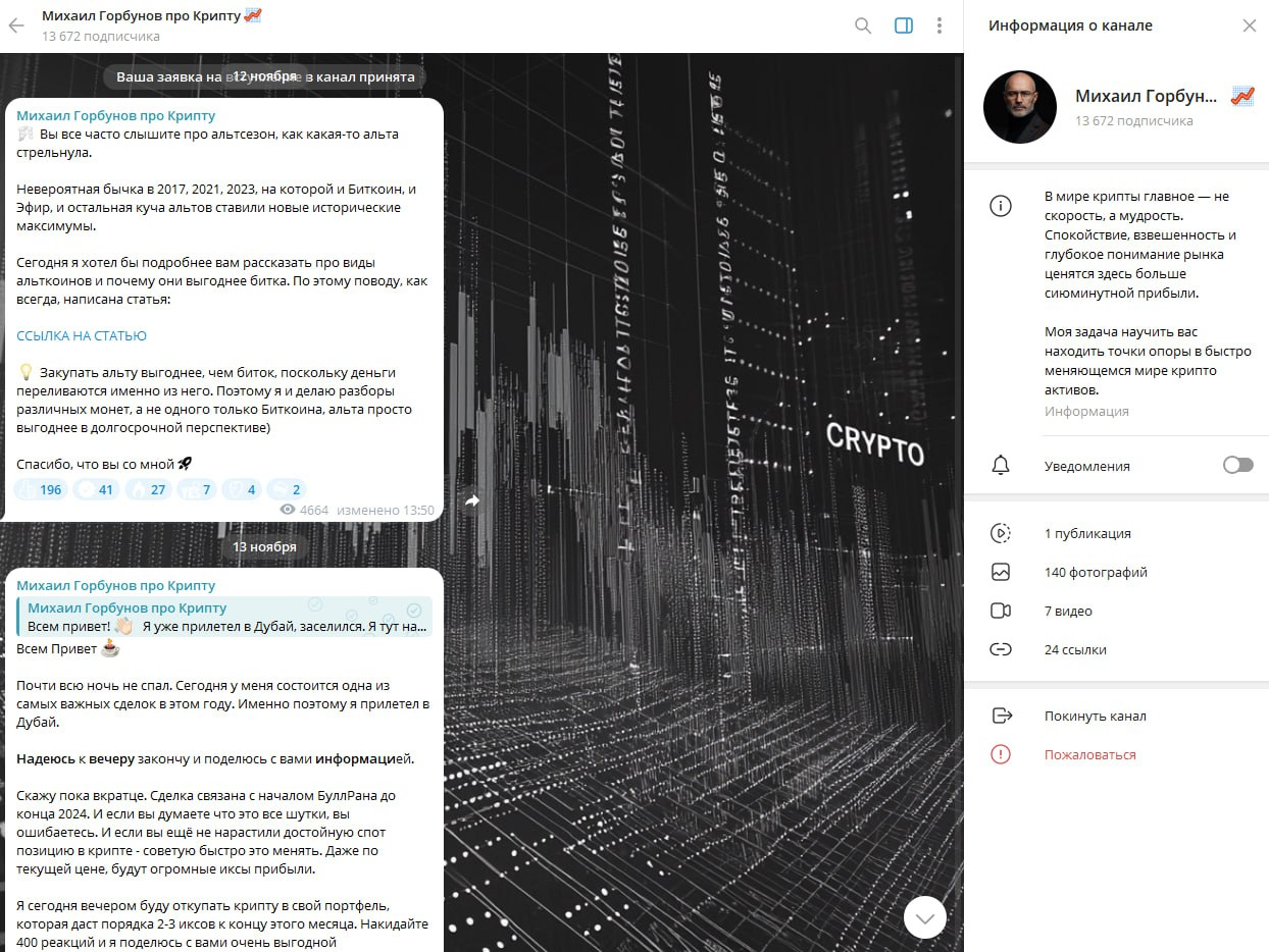Обзор деятельности Телеграм-канала Михаил Горбунов про крипту: схема развода, отзывы пользователей