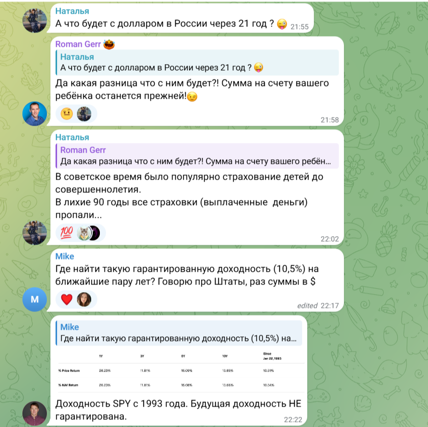 В комментариях под публикациями в Телеграмме часто встречаются обсуждения, которые касаются вопросов инвестирования.