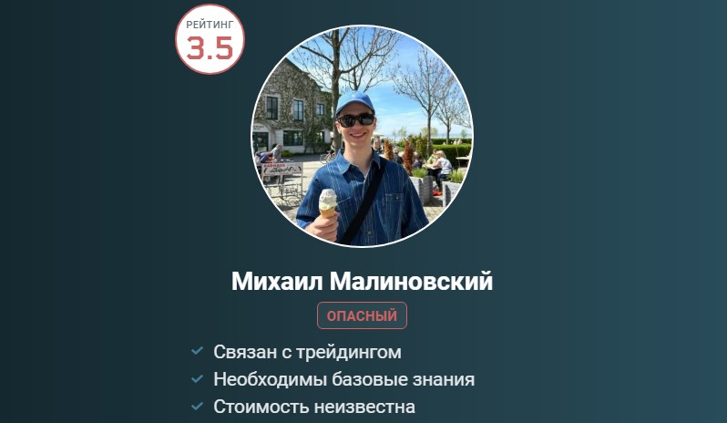 Канал по ссылке t.me mixail cryptos создан 22 апреля 2024 года. За пару месяцев набрал около 34 000 подписчиков. Однако к концу сентября просмотры резко снизились. Это может говорить о накрутке активности на старте для создания видимости популярности. Сам Михаил Малиновский рассказывает о себе как о профессиональном трейдере. Он якобы давно начал торговать криптовалютами. Однако, факты подтверждающие компетентность, отсутствуют. Автор канала называет себя экспертом, но доказательств нет.