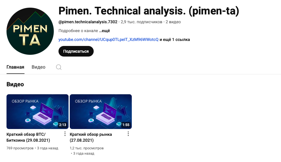 Пожалуй, стоит начать с того, кем является первоначальный автор канала. Михаил Пименов — трейдер и автор проекта Pimen. Technical analysis. Автор разработал несколько курсов на тему криптовалютных инвестиций. Курсы были направлены как на новичков, так и на более опытных пользователей. Также Михаил активно вел свой Ютуб канал, который был посвящен криптовалютам. Сегодня на канале осталось всего два ролика, которые были выпущены 3 года назад.