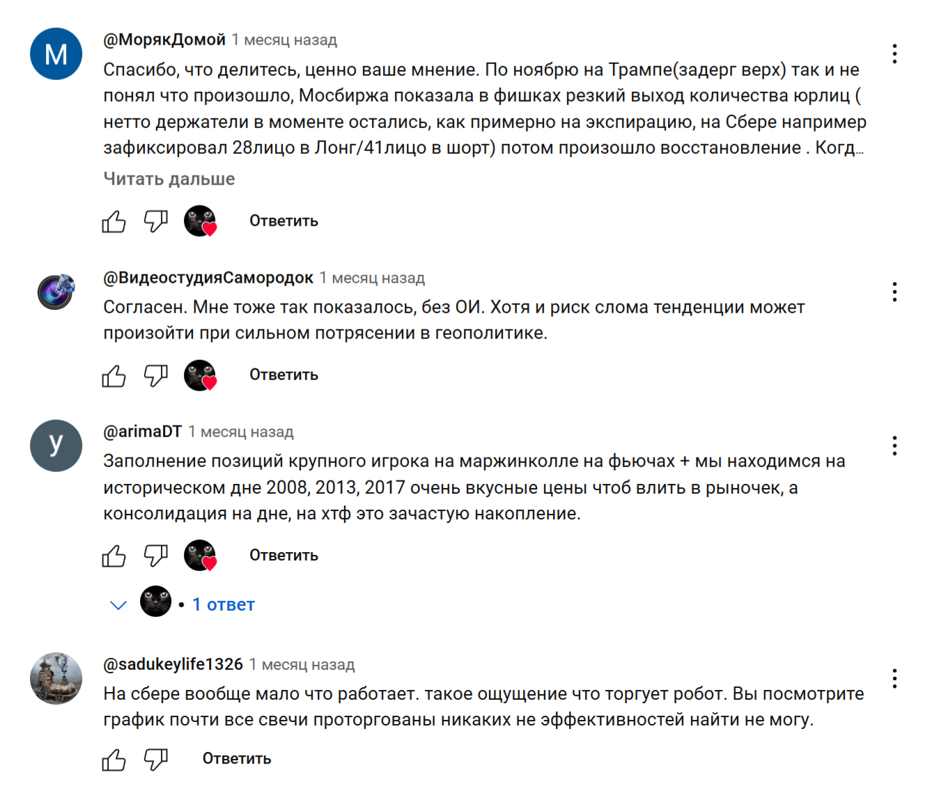 Также пользователи благодарят автора под его роликами в Ютубе и задают вопросы касательно торговли.