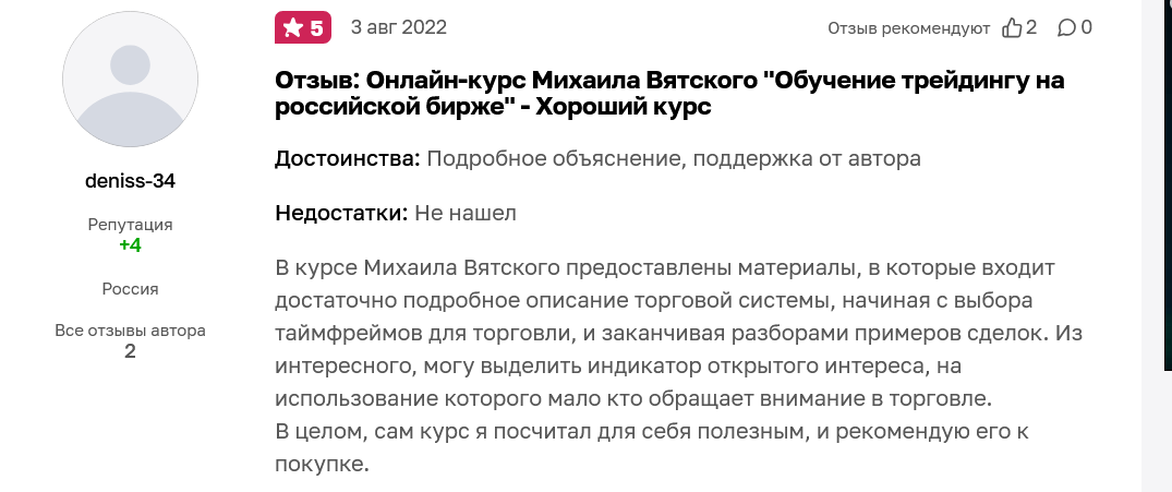 С учетом небольшой популярности отзывов о Вятском Трейдере немного. В некоторых комментариях пользователи отмечают доступность подачи и поддержку со стороны автора.