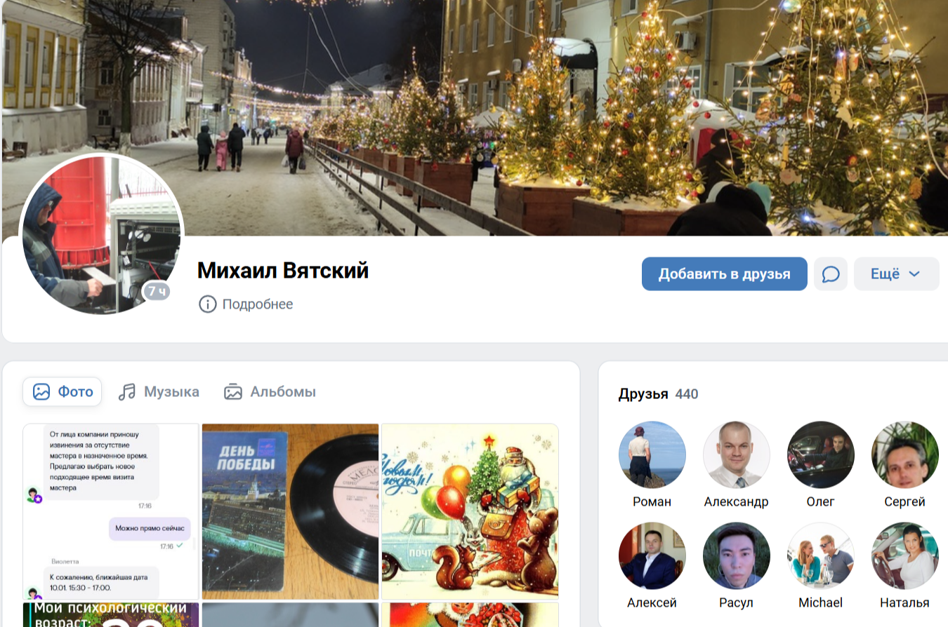 В Фейсбуке продвигаются вебинары для трейдеров, а также есть страница на электронную почту black2cat mail.ru. Последняя публикация датируется еще маем 2022 года, что говорит о заброшенности проекта.Также у трейдера есть несколько страниц в ВК. Личный профиль Михаила Вятского можно найти по ссылке vk com/id225378267. Здесь у автора уже 440 друзей. Здесь он также рекламирует курс, публикует личные фотографии и контент, посвященный трейдингу.
