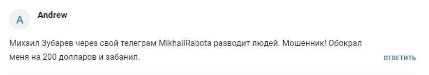 Настоящие отзывы о лжетрейдере Михаиле Зубареве