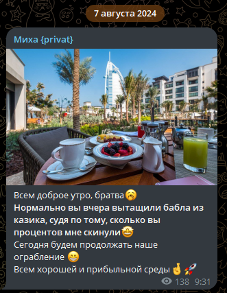 Трейдер периодически выкладывает скрины с сообщениями, которые, как он уверяет, отправляют благодарные клиенты. Но на сторонних сайтах не удалось найти никаких упоминаний об удачных алгоритмах Михи Приват и больших выигрышах в онлайн казино.