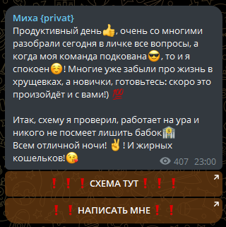 Последнее сообщение на ТГК Михи было оставлено 7 августа 2024 года. Больше на канале информации нет, схемы не публикуются. Скорее всего, Михаил закрыл проект из-за низкого количества пользователей, невостребованности и отсутствия заработка. Среди вероятных причин – увеличивающееся количество жалоб.