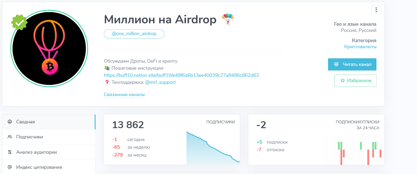 Разбор статистики телеграм-канала «Миллион на Airdrop»