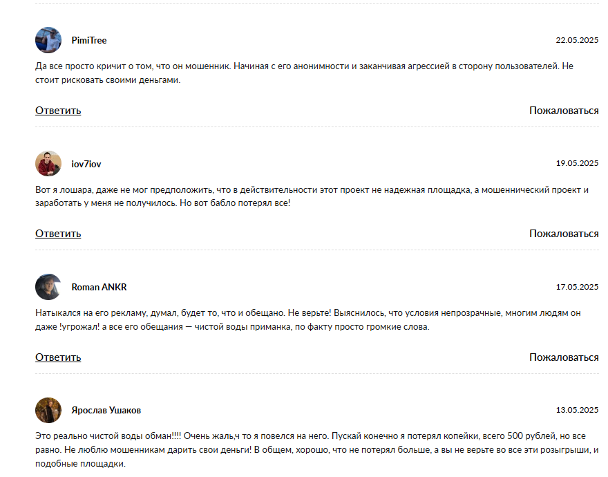 Другой пользователь пишет, что до последнего надеялся, что проект окажется честным и даже не мог и предположить, что вложенные средства обратно он не получит. Клиент с ником Roman Ankr заявляет, что специалист угрожал некоторым людям, которые пытались связаться с ним и вернуть депозит.