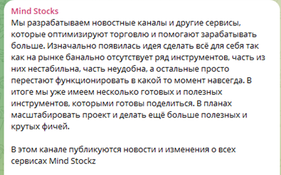 Проект «Миндстокс» в Телеграме имеет несколько аккаунтов. Это:
