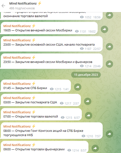 Подписчиков в аккаунтах немного – не более 700. Доступ во все открыт бесплатно. Уведомления в чатах публикуются в формате, который представлен на скриншоте ниже.