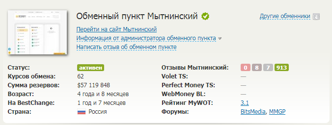 Мытнинский — обменник в интернете, который предоставляет свои услуги с 2018 года. Владельцы сервиса обещают безопасный обмен и выгодные курсы купли-продажи активов. Давайте разберемся, можно ли пользоваться этим сайтом или лучше воздержаться и поискать другую платформу.
