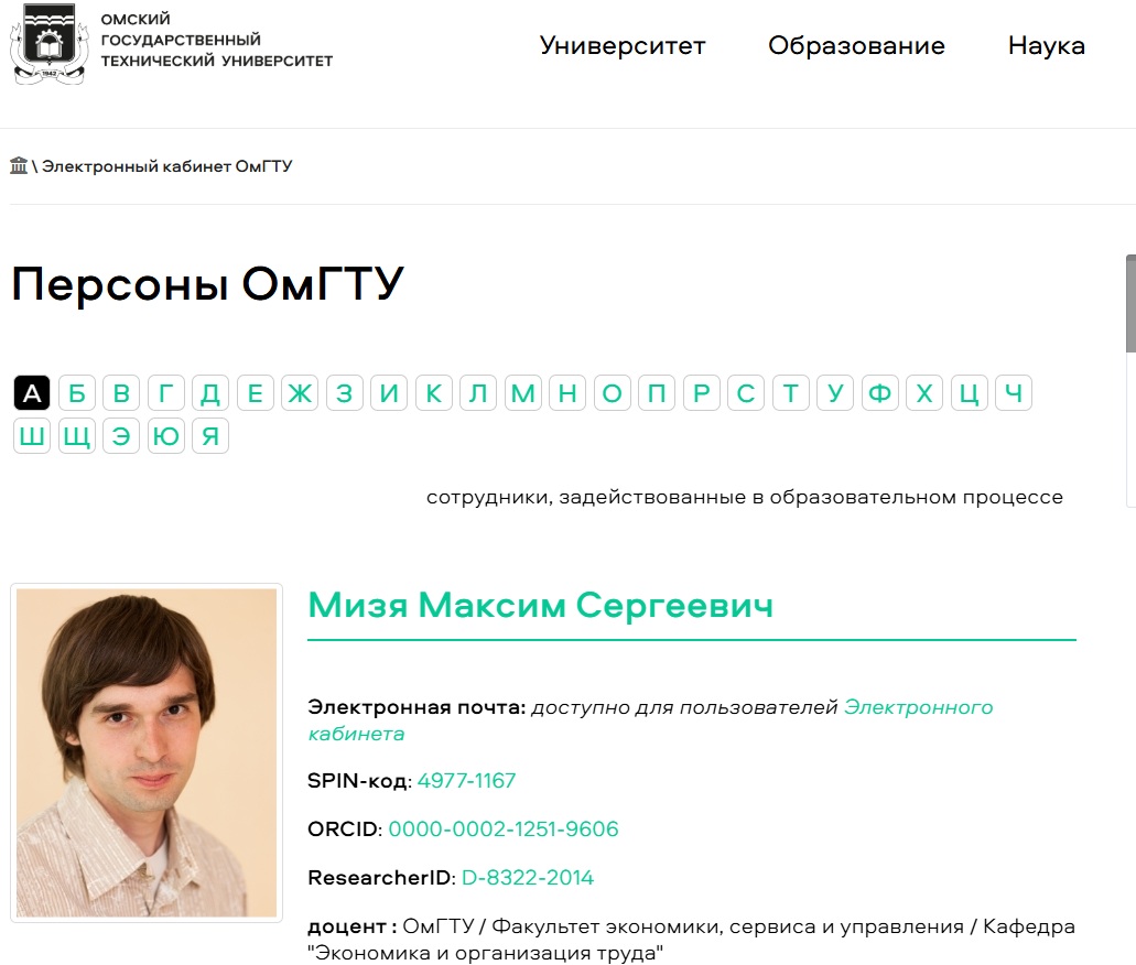 Так как на сайте указано, что Максим Сергеевич является доцентом Омского государственного технического университета, наша редакция проверила является ли ментор одним из сотрудников образовательного учреждения и нашла финансового наставника среди преподавателей университета.
