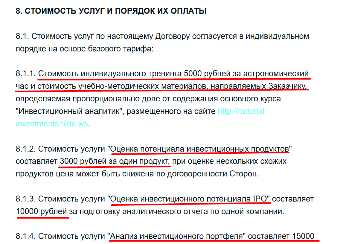 - подготовить аналитический отчёт по портфелю клиента – от 15 000 руб. в зависимости от количества позиций в портфеле.