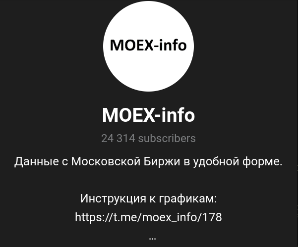 MOEX Info — финансовая платформа, на которой профессиональный аналитик Denis Konstantinov публикует информацию по трендам Моссбиржи. Опытный трейдер размещает сигналы, краткие обзоры активов, чтобы покупать и продавать с плюсом к прибыли. Автор проекта по инвестициям в рынки работает только с одной биржей, а потому и консультационное сопровождение заточено под нее. Автор телеграм-канала MOEX Info не предлагает платные услуги.