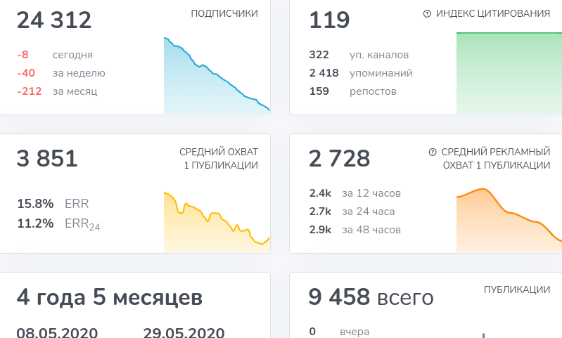 Вероятность искусственной накрутки минимальная, но активность оставляет желать лучшего. За счет анализа паблика по TGStat мы узнали, что всего 16% пользователей просматривают посты, а индекс вовлеченности находится на 0.4%. Помимо этого, мы выяснили, как аудитория изменилась за последнее время.