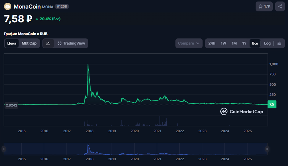 С 2020 по 2025 года монеты проявляет стабильность в ценообразовании. На ноябрь 2025 года курс MonaCoin составляет ₽7.58.