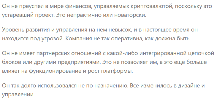 Цифровой актив получил негативную репутацию из-за ограниченной территории обмена, отсутствия дорожной карты и как такового развития.