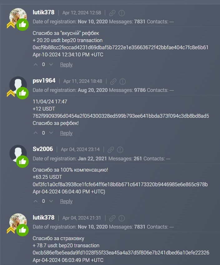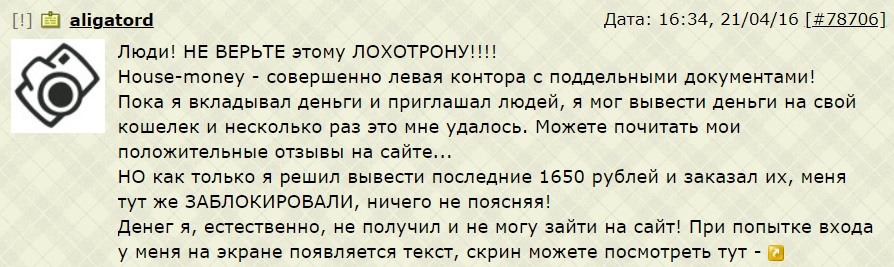 В комментариях о проекте Money House на подконтрольных Артему Сергеевичу ресурсах довольные клиенты заявляют о 100% выплате страховки, рефбеке депозитов. Отзывы пишет команда аферистов или сам мошенник из своих профилей, в которых можно менять имена и ники множество раз.