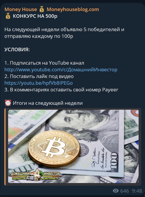 • тг канал с новостями Money House Moneyhouseblog com с ником dominvestornews;