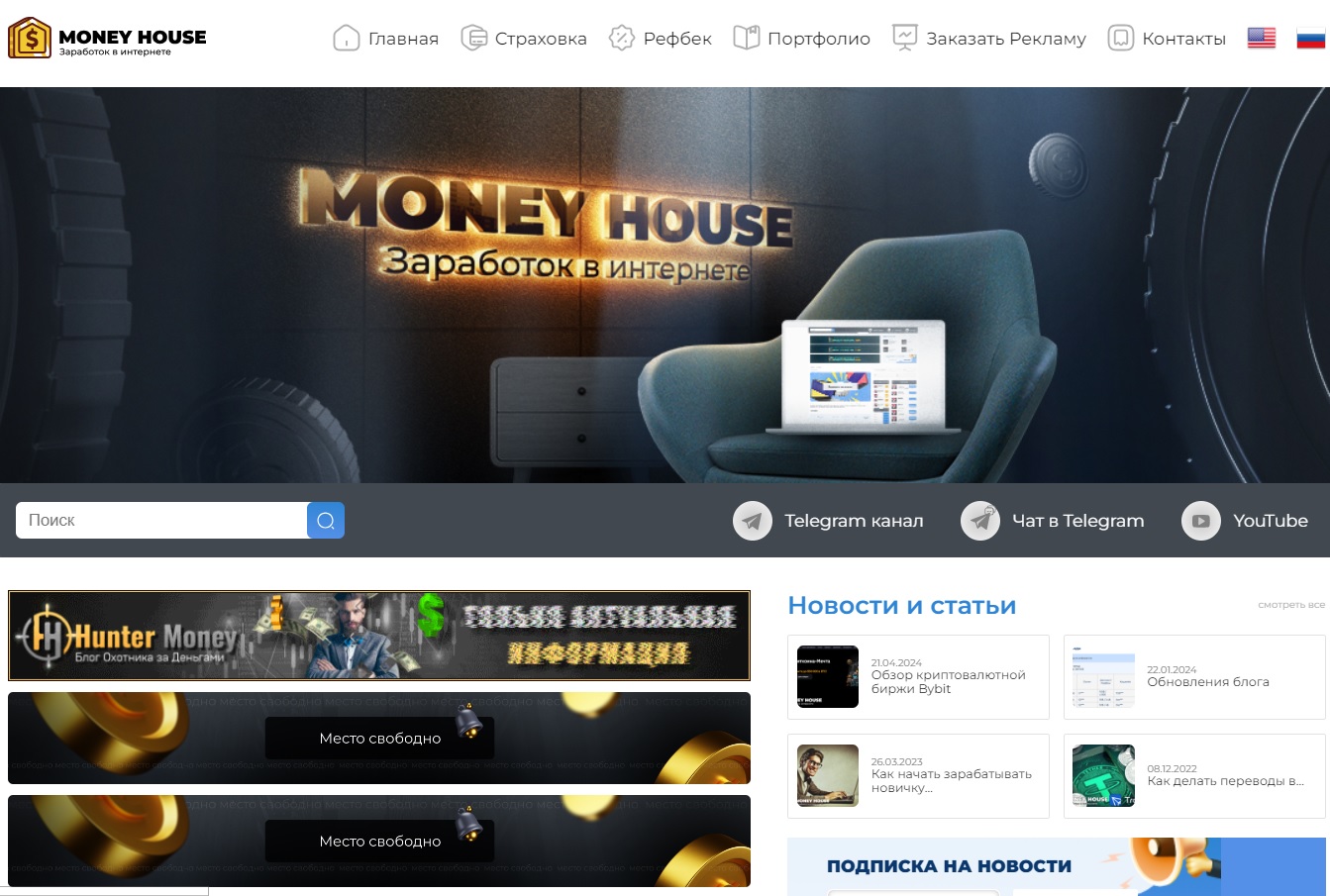 Услуги Артем MoneyHouse продвигает на множестве платформ: в личном блоге, в телеграме, во ВКонтакте и на ютубе. Официальный сайт можно найти по адресу moneyhouseblog com, который зарегистрирован 2 августа 2022 года, но начал работу только с 25 июня 2024 года. Предыдущий клон мошенников назывался Friend House, на его странице изменили дизайн, но тексты и отзывы оставили прежними.