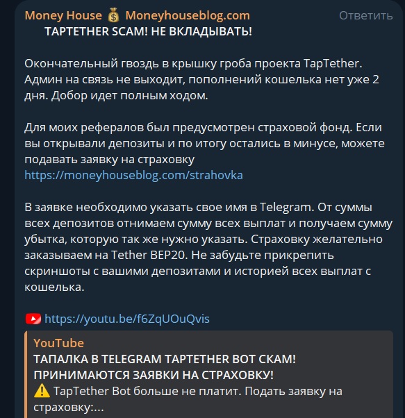 В ленте тг канала Money House Moneyhouseblog com отсутствует полезная финансовая информация о торговле трейдеров на брокерском сервисе и другой контент с практическим смыслом. Блог нацелен на рекламу сомнительных фирм и проектов, среди которых часто встречаются лохотроны. Солидные компании не заказывают маркетинговые услуги у скам блогеров.