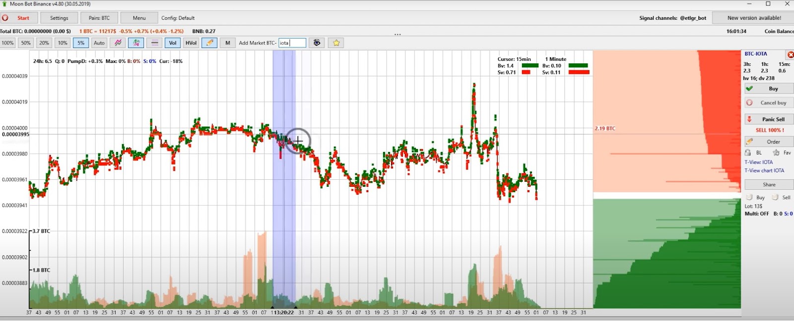Имеет примерно те же функции, что и любой другой скальперский терминал. Позволяет быстро выставлять и перемещать ордера кликом по графику, в нем реализован быстрый скальпинг и получение сигналов из TradingView и Telegram. На интеграции с последним разработчики программы особенно акцентируют внимание: через Телеграм можно полноценно управлять терминалом. На официальном сайте есть видео с обучением по MoonBot.