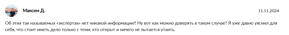 Положительных отзывов от довольных клиентов о проекте в сети нет, пользователи не доверяют трейдеру и подозревают его в обмане из-за анонимности.