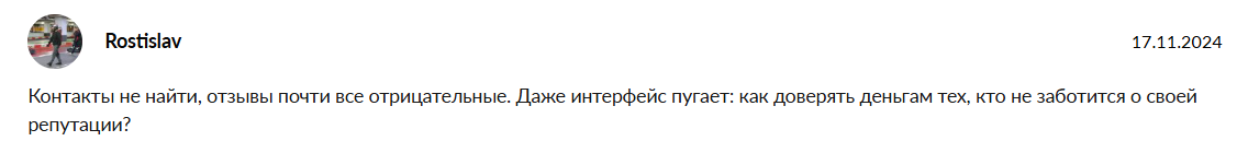 - Отзывы о проекте негативные и трейдера называют настоящим мошенником, то есть, положительной репутации у проекта нет.