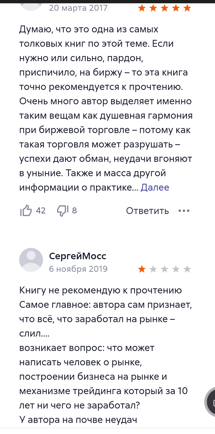 На сервис mozgovik research отзывов практически нет. На сайте проекта размещено несколько благодарностей от подписчиков. Но рассматривать их всерьез нет смысла. Обычно такие комментарии пишутся и размещаются самими администраторами ресурса. Комментирование на телеграмм каналах закрыто.Отзывов о создателе мозговик ресерч и его предыдущих проектах в сети предостаточно. Мнения разных читателей о его книге диаметрально противоположны. Одни считают ее лучшим произведением о биржевой торговле и психологии трейдинга. Другие утверждают, что автор сам ничего не заработал на рынке, а все написанное им вода и устаревшая теория, которую невозможно применить на практике.