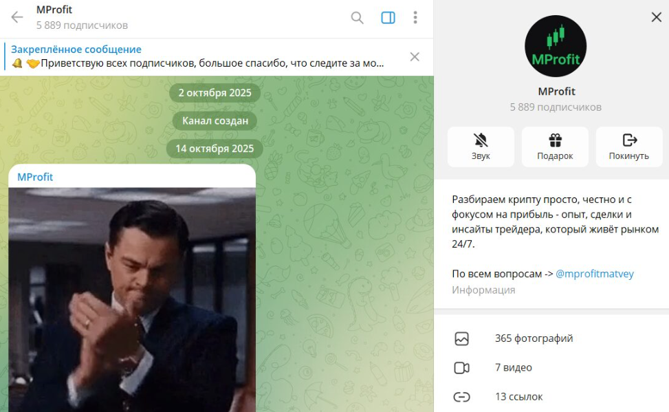 Показатели вовлеченности (ERR) и просмотры постов вызывают сильные подозрения в накрутке. Обычно у реальных трейдеров аудитория набирается годами за счет качественной аналитики, а здесь мы видим обычное «ботоводство»: подписчики есть, а живой активности в комментариях и чатах — минимум. Матвей (@Mprofitmatvey) явно пытается создать иллюзию популярности, чтобы войти в доверие к неопытным трейдерам, которые привыкли верить цифрам на счетчике.