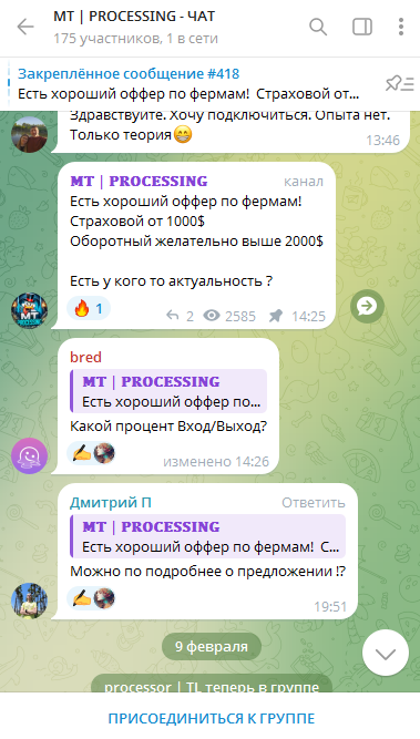 В данном обзоре мы проверили чат в ТГ MT Processing, изучили информацию о команде, предложения и отзывы. По результатам проверки мы пришли к выводам: