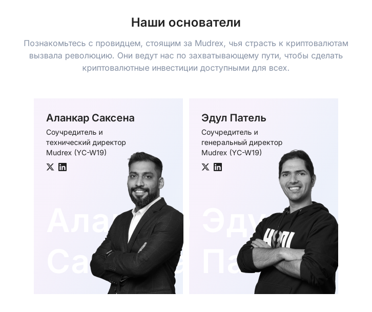 На бирже можно найти имена и фамилии команды создателей, фотографии: Аланкар Саксена, Эдуль Патель. Никакой другой информации о них нет.