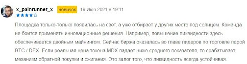 О функционале торговой площадки есть положительные отзывы. Например один из клиентов пишет, что Mudrex только появилась на свет, а уже применяет инновационные решения, такие как повышение ликвидности двойным майнингом.