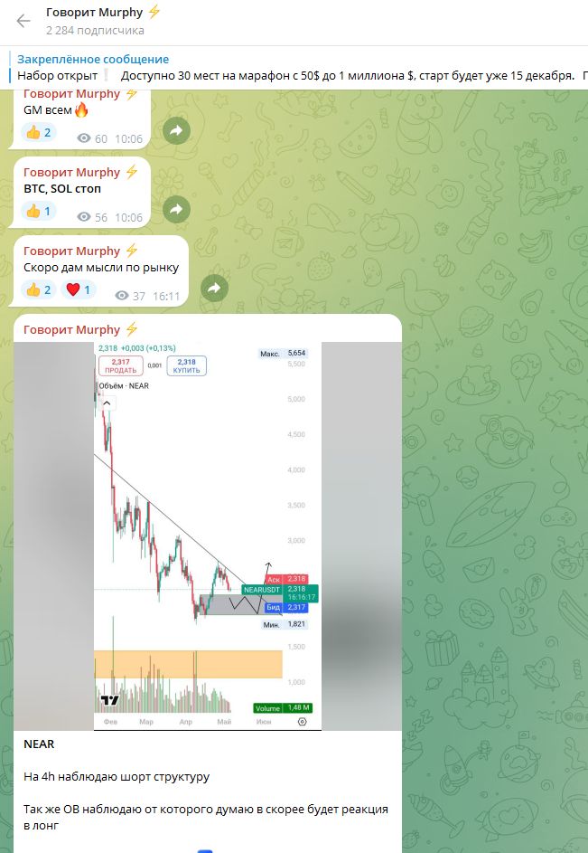 «Говорит Murphy» – еще один типичный трейдер из наших обзоров, который предоставляет аналитику по криптовалютам. Канал нельзя назвать мошенническим, а сам контент в целом полезный. Вот основные причины его рекомендовать как информационный источник: