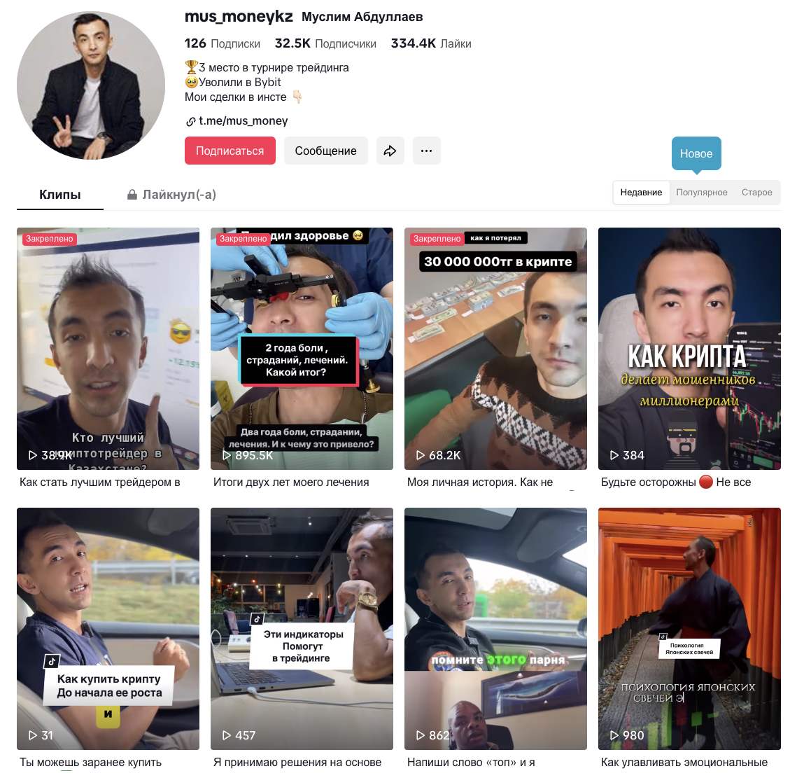 Также у Муслима есть и аккаунт в TikTok – Mus MoneyKZ. На него подписано около 32,5 тысяч человек. Ролики, в свою очередь, в сумме собрали более 330 тысяч лайков.